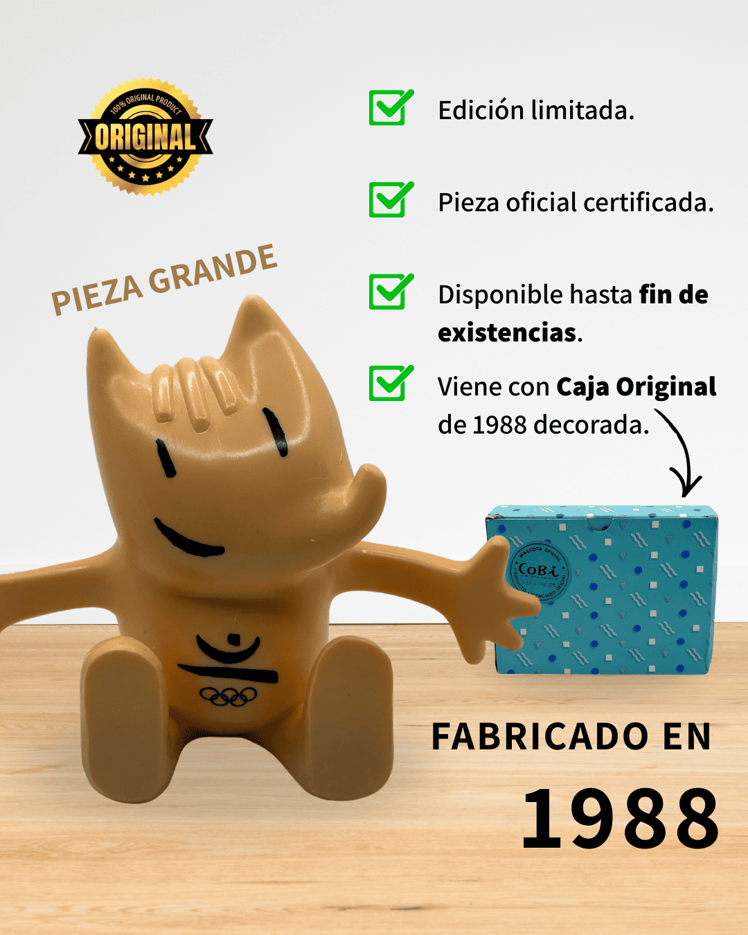 COBI Large Sitting is one of the most endearing versions in the official collection. Manufactured in 1988 under the original license, this figure captures the creative spirit of the 1992 Barcelona Olympic Games in a large format, ideal for display cases or themed decor.